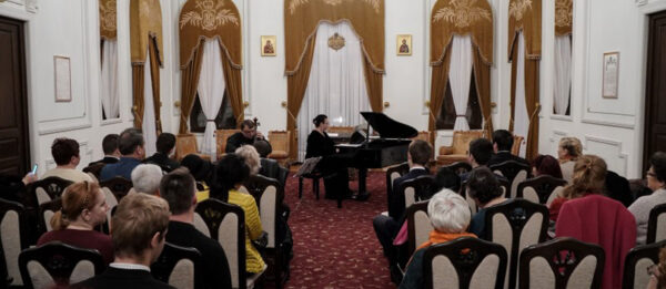 Manifestarea cultural-artistică din această seară s-a desfăşurat în Salonul Oficial al Muzeului eparhial şi a fost susţinută de Ansamblul „Musica Viva“, format din artiștii Florin Mitrea la violoncel și pianista Andreea Butnaru.