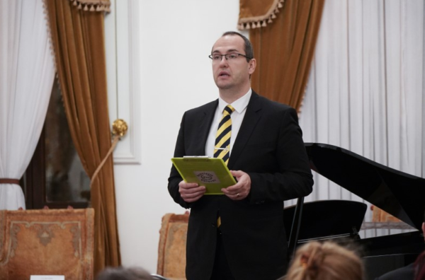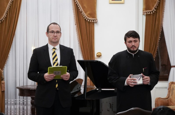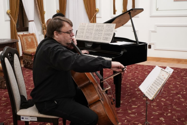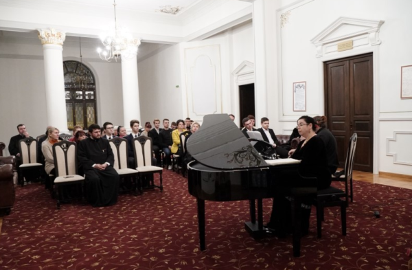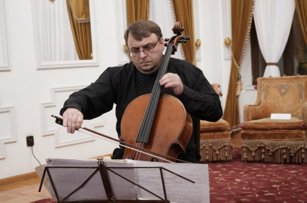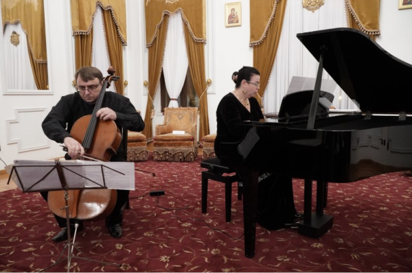 Manifestarea cultural-artistică din această seară s-a desfăşurat în Salonul Oficial al Muzeului eparhial şi a fost susţinută de Ansamblul „Musica Viva“, format din artiștii Florin Mitrea la violoncel și pianista Andreea Butnaru.