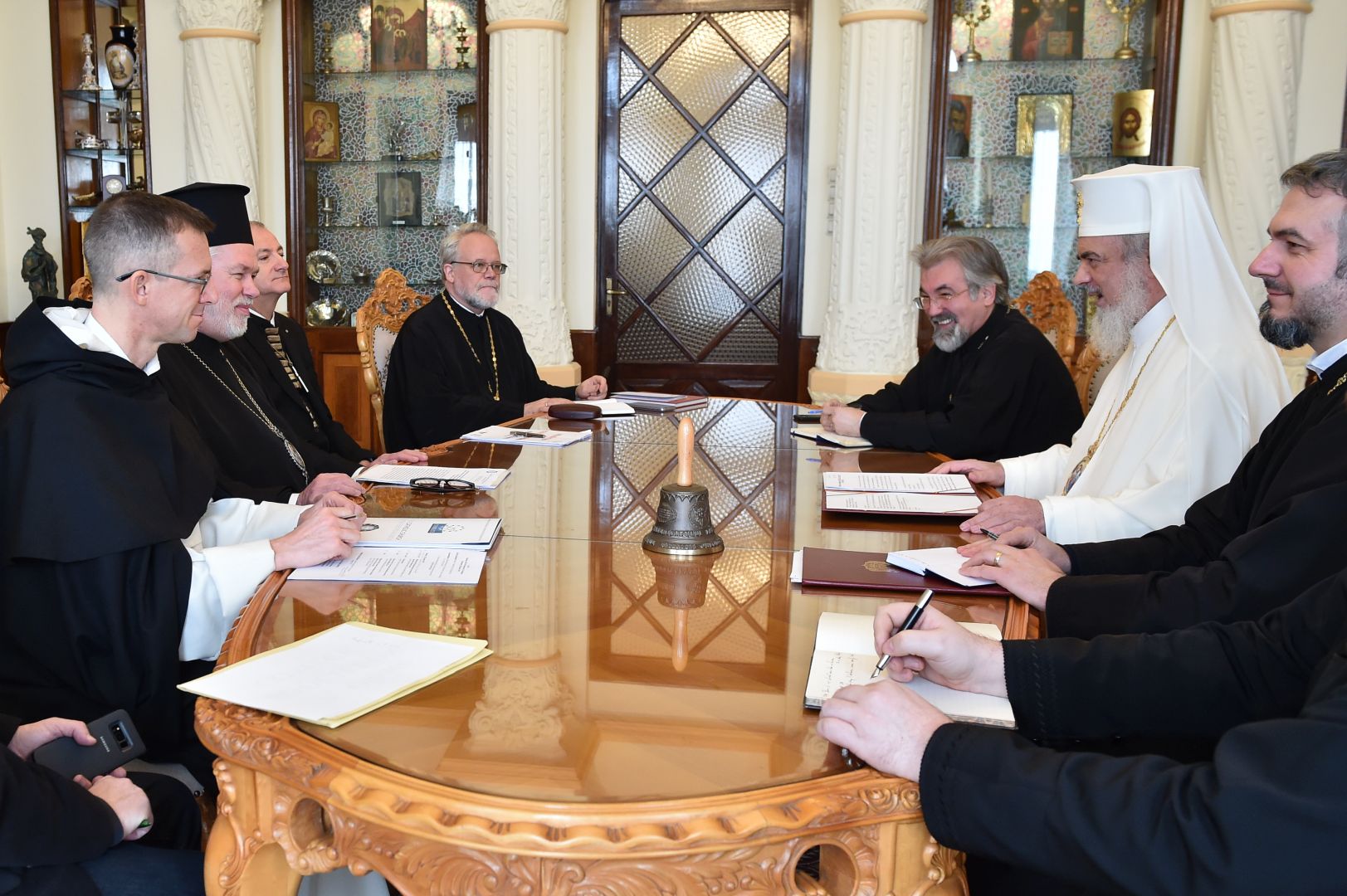 On Monday, January 28, 2019, His Beatitude Patriarch Daniel of the Romanian Orthodox Church welcomed at his patriarchal residence the delegations of the Committee of Representatives of the Orthodox Churches to the European Union (CROCEU), the Commission of the Roman-Catholic Bishops’ Conferences of the European Community (COMECE), and the Conference of European Churches (CEC), who are currently visiting Bucharest following Romania’s taking over the EU presidency on January 1.