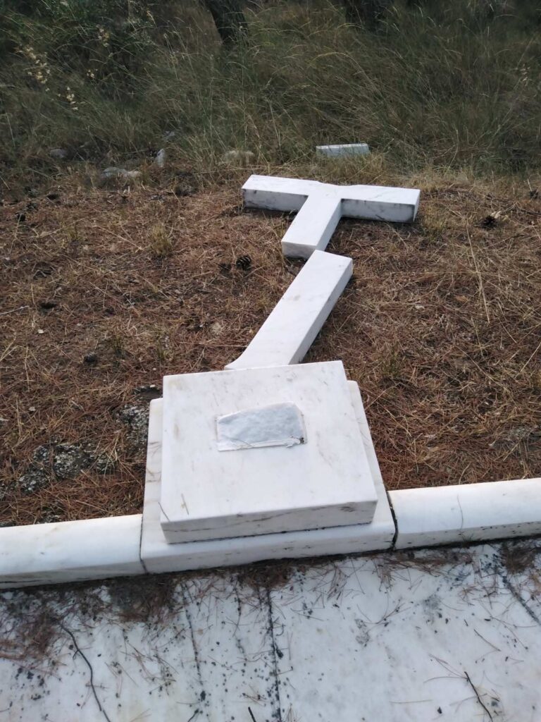 The cross on the grave of a royal Greek couple at the cemetery at the Tatoi Palace outside Athens was found vandalized on Monday.