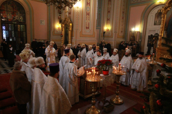 Împreună cu Preafericirea Sa au coliturghisit: Arhiepiscopul Alexandru de Gorodnitsky, vicarul Eparhiei de Kiev (Biserica Ortodoxă a Ucrainei – Patriarhia Moscovei) şi Episcopul Isaia de Šumperk (Biserica Cehiei şi a Slovaciei).