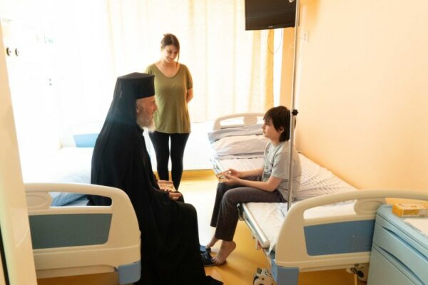 La final, chiriarhul Dunării de Jos, în prezenţa cadrelor medicale, a vizitat copiii internaţi în această clinică pentru a-i binecuvânta, a-i încuraja şi a le oferi iconiţe şi alte daruri.