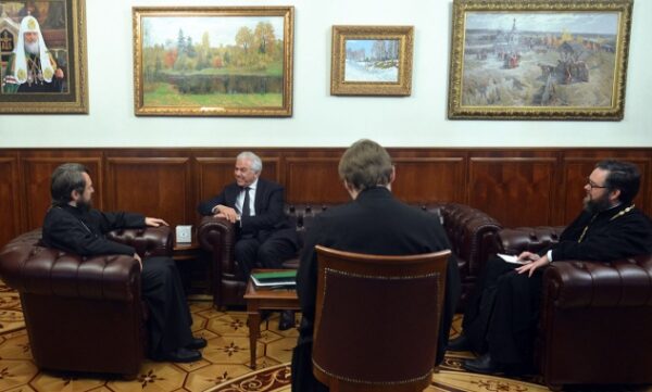 Metropolitan Hilarion greeted the guest on his first visit to the Synodal department in charge for international activity of the Russian Church.