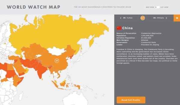 The charity for persecuted Christians ranks China at 27 out of the top 50 countries where it is hardest to be a Christian, a jump of 16 places.