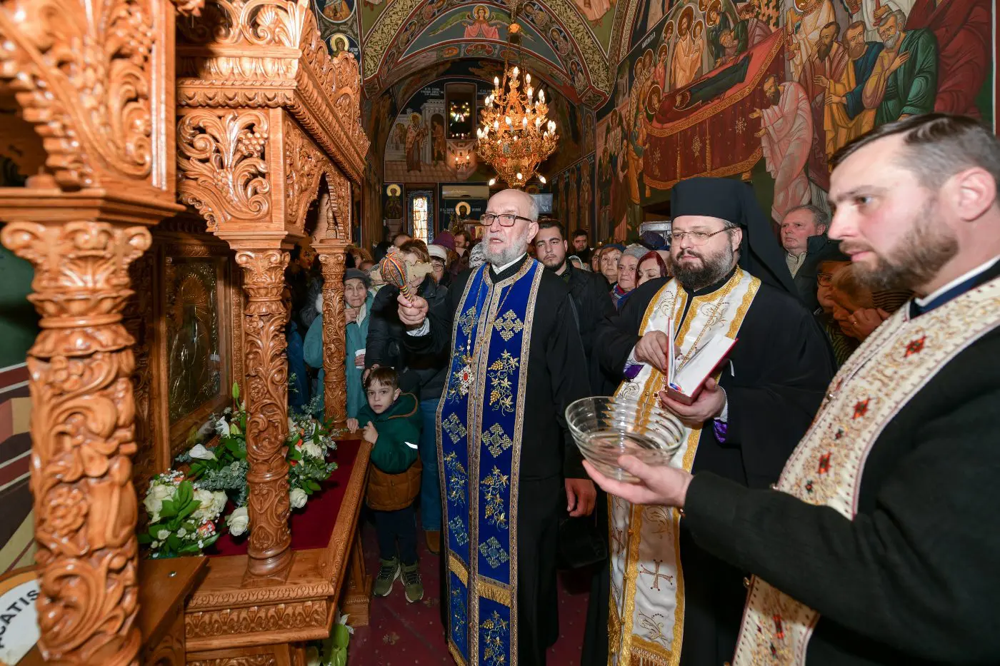 După Sfânta Liturghie a fost oficiat Parastasul pentru ctitori și au fost sfințire două baldachine în care vor sta sfintele odoare ale bisericii.