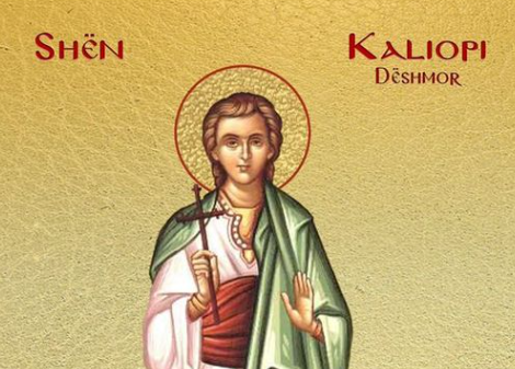 Shën Kaliopi ishte nga një familje me origjinë senatorësh të Pergës, në Pamfili dhe u edukua me virtytet e krishtera nga ëma, Theoklia. Kur u shpall nga Diokleciani (304), edikti i persekutimit të përgjithshëm, i nxitur nga e ëma, shkoi të fshihej në Pompeipolis, në Kiliki. Dëshmitar i orgjive me anë të të cilave prefekti Maksimin nderonte perënditë pagane, i riu i krishterë nuk pranoi të merrte pjesë në to dhe tha: “Unë jam i krishterë dhe Krishti festohet duke kreshmuar!”. Menjëherë e kapën dhe e shpunë para guvernatorit, i cili i premtoi të bijën për nuse, nëse do të pranonte t’u bënte fli perëndive pagane. Kaliopi iu përgjigj: “Dijeni mirë, unë jam dhënë i gjithi te Jisu Krishti, Perëndia dhe dua ta paraqes trupin tim të panjollë dhe të virgjër para gjykatores së Tij”.