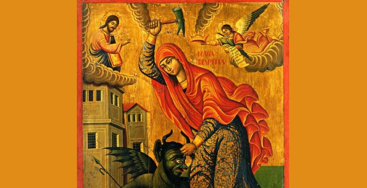 Pëllumbi fluturoi dhe qëndroi mbi supin e Marinës dhe i tha: “Gëzohu, Marina, pëllumb shpirtëror i Perëndisë, sepse e munde të Ligun dhe e mbulove me turp.