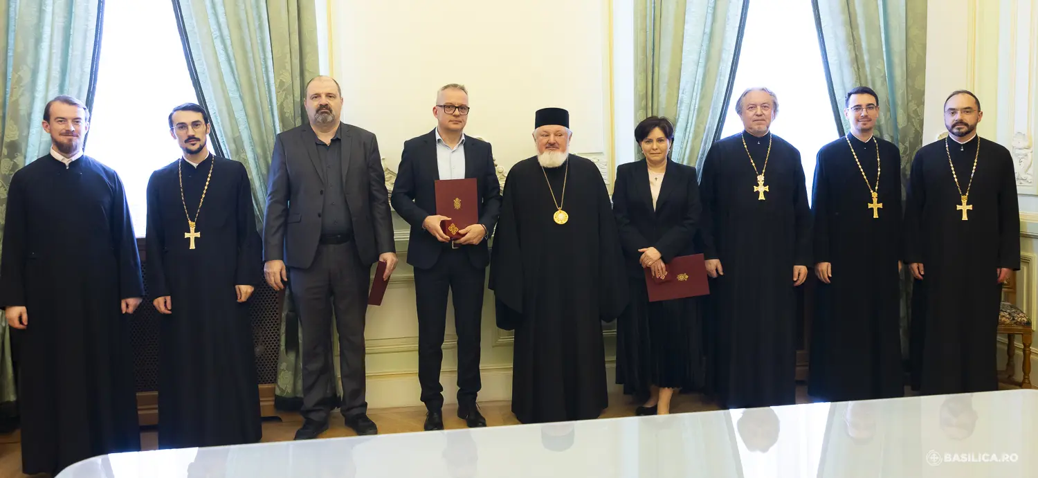 Distincțiile, câte o Diplomă cu medalie a Anului Centenar al Patriarhiei Române, au fost înmânate la Palatul Patriarhiei de Preasfințitul Părinte Varlaam Ploieșteanul, Episcop vicar patriarhal.