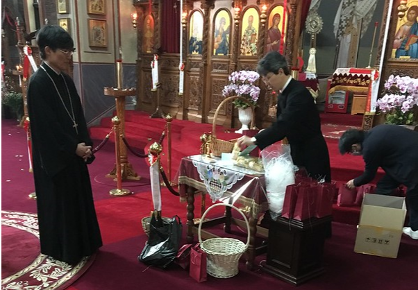 On Easter Sunday, after the Vespers of Love, which was celebrated, with «the doors clesed», just like the rest of the Holy Services of Holy Week, our Clergy along with members of the Church Council of the Cathedral of St. Nicholas Seoul, organized in mall groups visited the houses of our Orthodox faithful and the catechumens to exchange with them the Paschal greeting: “Christ is Risen” and to hand them the Easter eggs as well as portion of the Holy Unction.