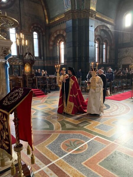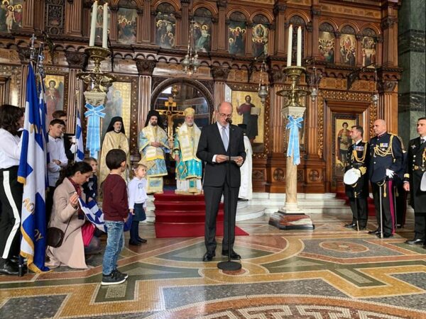 On Sunday, 27 October 2019, His Eminence Archbishop Nikitas con-celebrated the Divine Liturgy at the Cathedral of the Divine Wisdom in Bayswater with The Right Revd Bishop Maximos of Melitine (Assistant Bishop of the Metropolis of France) followed by Te Deum (Doxology) for 28th October 1940. Bishop Maximos presided at the Matins.