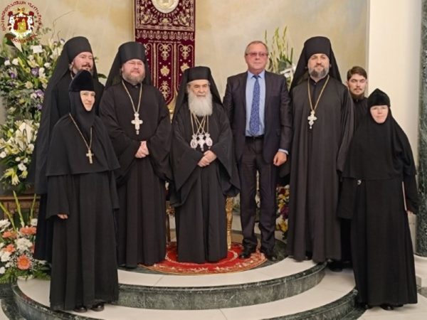 The relations of the Patriarchate with the other Christian Churches were determined by Your Beatitude by redefining Your participation in the World Council of Churches and the Middle East Council of Churches and by strengthening the institution of the Council of Heads of Local Churches, convened to the current Patriarchate under the auspices of Your Beatitude to study and deal with problems of the Christian Churches of the Holy Land, such as the granting of residence permits (visas), imposition of unacceptable municipal taxes, incidents of violence at the expense of pilgrims and affected Christians from the violence of the previous year and now the raging and endless war in Israel, in the territory of the Palestinian Authority and in the Monastery of Saint Porphyrios of Gaza. For this work of Yours of preserving the peaceful cooperation of the Christian Churches of the Holy Land, Your Beatitude was praised by the recently visiting our Patriarchate, His Eminence the Archbishop of Canterbury, Mr Justin Welby. For Your interfaith pacifying work, You were recently awarded the first peace medal from the Republic of Kazakhstan. Your Holy Beatitude often invited government agents and diplomatic representatives of many countries to the Patriarchate, always giving the necessary priority to our motherland and explaining to them the multifaceted Pastoral and pacifying work the Patriarchate conducts.