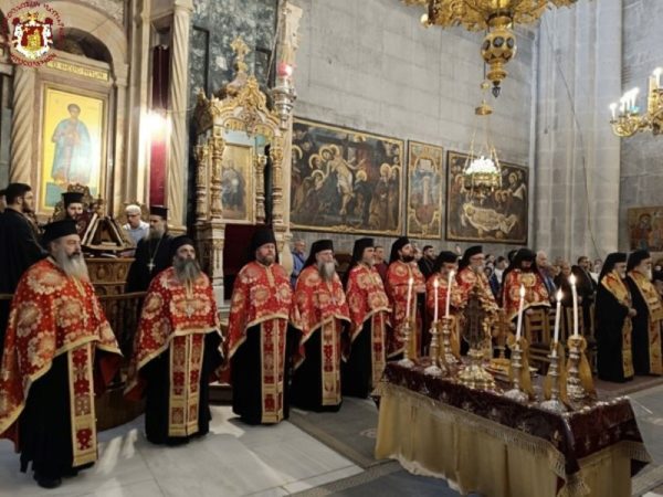 Needless to say, we are watching with agony and awe the intensely indescribable and indeed dramatic developments of the current military conflict, both in the destroyed Gaza Strip, as well as in the country of Lebanon, as well as in the West Bank. We are in awe of the acts against the imprisoned Gazans in the Holy Monastery of Saint Porphyrios in Gaza, indeed of our Holy Sepulchre brothers, Our Patriarchal Representative His Eminence Archbishop Alexios of Tiberias, and the ministering Priest, Reverend Archimandrite Silas, serving with self-sacrifice to the remaining “remnant” (Rom. 11,5) of our Christian flock. “I am the good shepherd. The good shepherd lays down his soul for the sheep” (John 10:11), says the Lord.