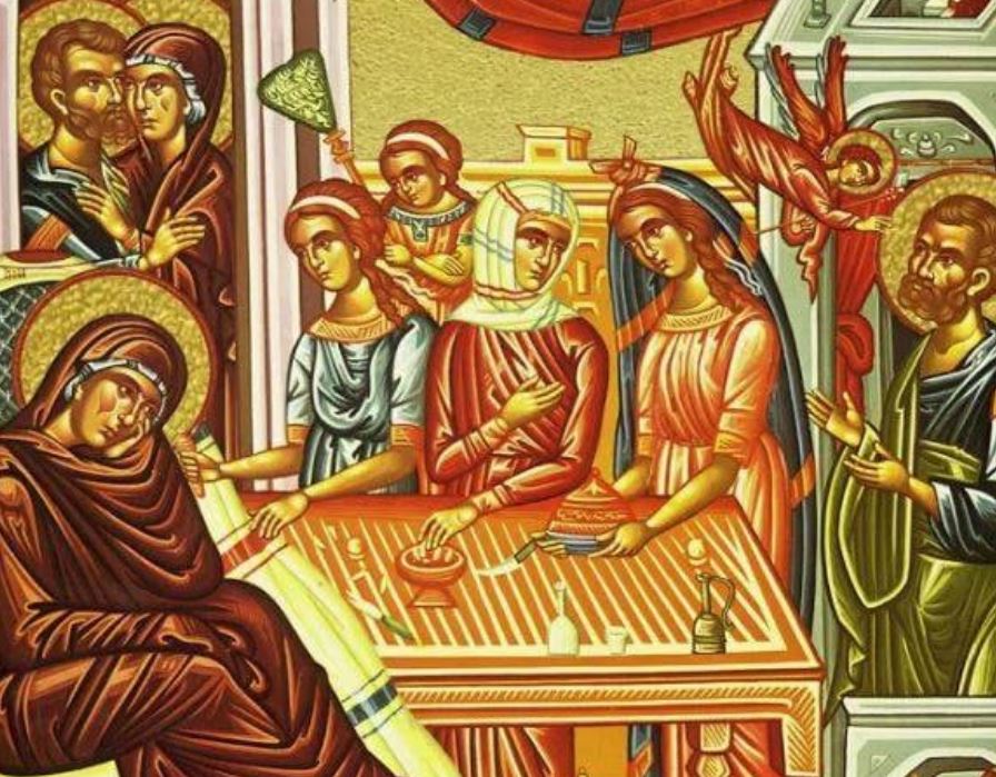 Kur kaluan nëntë muaj, Ana lindi dhe e pyeti maminë: “Çfarë kam sjellë në këtë botë?”. “Një vajzë”, u përgjigj ajo. “Shpirti im është madhëruar këtë ditë”, tha Ana dhe e uli foshnjën në djep. Dhe kur erdhi dita e pastrimit të saj sipas Ligjit, ajo u ngrit, e lau e i dha gji foshnjës dhe e quajti atë Mari, një emër që pritej fshehtazi nga patriarkët, profetët dhe të drejtët, me anë të të cilit Perëndia do të zbulonte misterin e fshehur nga përjetësia.
