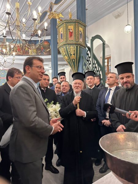 “Today by the Grace of God, our Patriarch was able to conduct the opening of the doors of our Church with the honourable presence of the Local Mayor Mr. Ekrem İmamoğlu, to whom His All-Holiness expressed the many thanks of the Church for the scientific and meticulous renovation of the Church.”