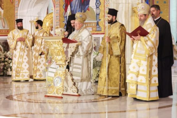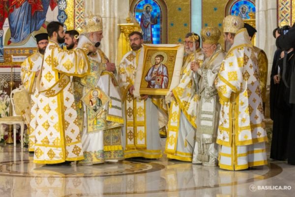 Patriarch Daniel presented Patriarch Bartholomew with an icon of Saint Bartholomew the Apostle, noting that the consecration coincided with the Feast of Saint Demetrius the Myrrh-Gusher, the Ecumenical Patriarch’s baptism name day (Dimitrios).