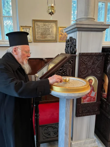 Also, prayerfully present alongside His All-Holiness was His Eminence Elder Metropolitan Emmanuel of Chalcedon. The Chancellor of the Holy Metropolis of Chalcedon, Archimandrite Evgenios Karatzas also took part in the Trisagion prayers.