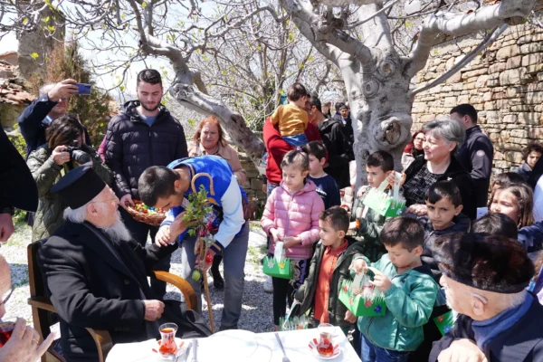At the hospitality that was offered in the courtyard of the Church, the young students of the Primary School sang the Carols of Saint Lazarus and His All-Holiness blessed them and offered all the children the ancestral “Lazarakia” and sweets.