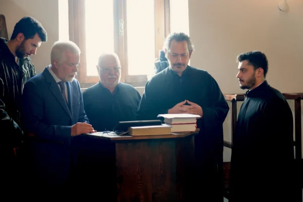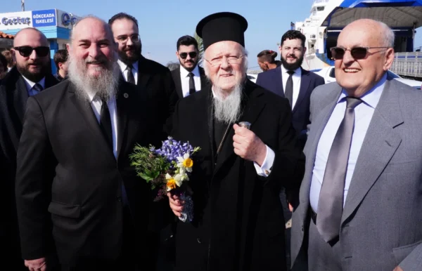 The Ecumenical Patriarch arrived in Imbros on Friday, April 7, accompanied by the Grand Ecclesiarch Archimandrite Aetios and Grand Syncellus Archimandrite Iakovos, Deacon of the Order Varnavas Grigoriadis and Patriarchal Deacon Ieronymos Sotirelis, Mr. Nikolaos-Georgio Papachristou, Director of the Press and Communication Office, and Mr. Georgios Doxastakis, theologian, Panagiotis Grafiadelis and Themistoklis Karanikolas, Patriarchal employees.