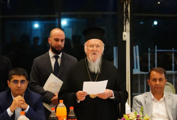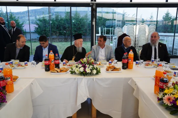 In the afternoon, His All-Holiness officiated at the Great Vespers of Palm Sunday, which was held at the Holy Metropolitan Church of the Virgin Mary and then attended the Iftar dinner offered by the Holy Metropolis of Imbros and Tenedos to the Muslim fellow citizens of the island. The Patriarch spoke with warm words to the congregants, underlining the need for peaceful coexistence of the believers of the two religions, as well as the neighbouring peoples of Greece and Turkey.