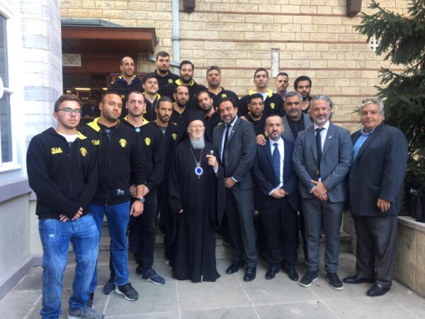 The Ecumenical Patriarch of Constantinople, His All Holiness Bartholomew I, received players and coaching staff of the AEK Athens men’s water polo team late last week.