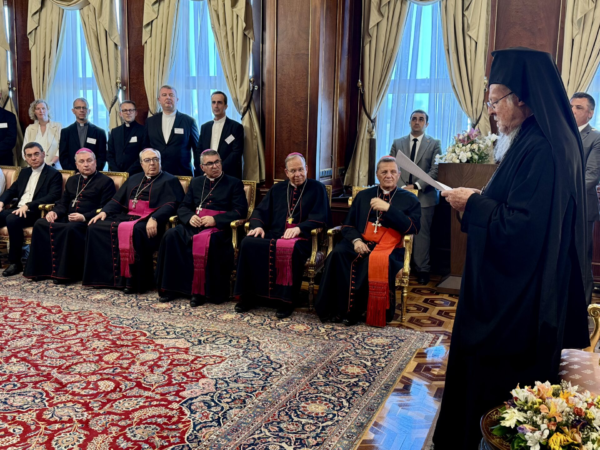 The delegation included Roman Catholic bishops, clergy, and lay collaborators, all of whom received commemorative gifts from the Ecumenical Patriarch.