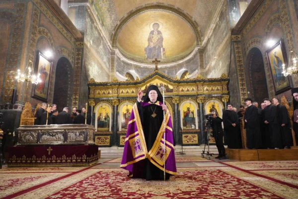 “In this sacred place, for centuries the prayer and hymnody of our Orthodox Church and the worship of the Triune God have resounded, through which the apostolicity, martyrdom, and ecumenicity of our Church are most clearly demonstrated. A Church which does not merely live from the past, but is inspired by it and bears witness to the light of Christ, which reveals the past, illumines the present and the future, and dispels darkness and gloom. This is the light of the Wisdom of God.”