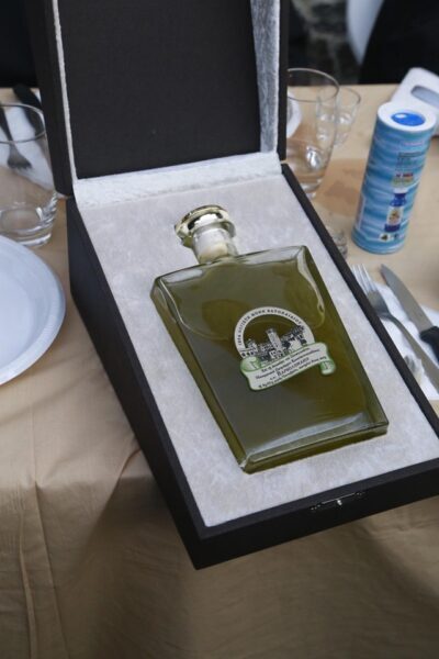 The special edition olive oil line was overseen by Fr. Eudokimios, especially for the Patriarch’s visit.