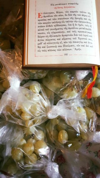 After the dismissal of the Divine Liturgy, Elder Metropolitan Emmanuel of Chalcedon, together with the antidoron, distributed the blessed grapes to the pious Christians, having read the appropriate prayer for blessing, continuing the old tradition of the Church of Constantinople on this feast day.