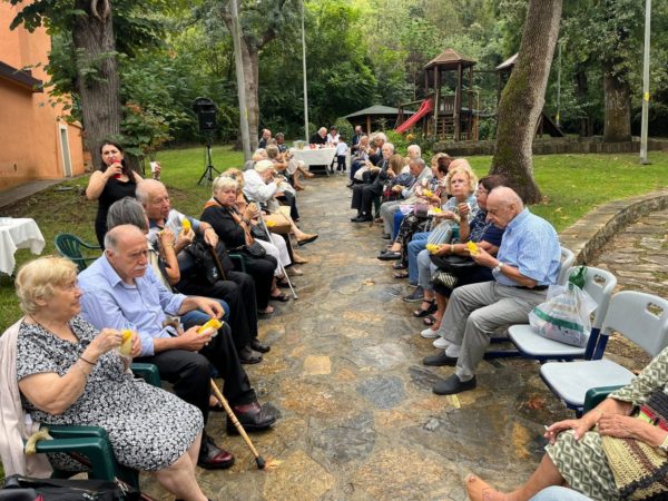 In the vibrant and lush green courtyard of the Sacred Spring, the committee, with the special care of its President, Mrs. Ioannis Demirtzoglou, offered traditional hospitality to all the pilgrims, accompanied by music, reviving the festival that was celebrated in the past years.