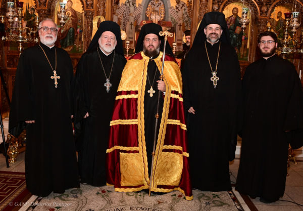 The enthronement was conducted by His Eminence Archbishop Nikitas of Thyateira and Great Britain, as a representative of His All-Holiness Ecumenical Patriarch Bartholomew, in the presence of His Eminence Archbishop Elpidophoros of America, Their Graces, Bishop Athenagoras of Nazianzus, Bishop Nektarios of Diokleia, and Bishop Irineos of the Serbian Church, clergy of the Holy Patriarchal Monastery and the Holy Archdiocese of America.