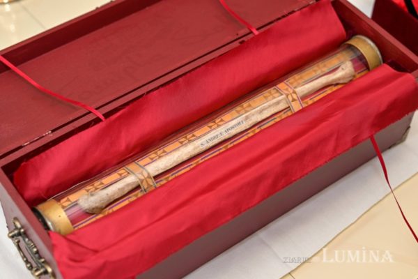 La pregătirile intense care se fac pentru sfințirea de anul viitor, se adaugă confecționarea unei racle în care se va păstra fragmentul de moaște care are o lungime de 33 cm.