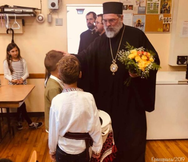La Parohia „Pogorârea Duhului Sfânt” din Windsor, Ontario, ierarhul român a fost întâmpinat cu flori de cei mai tineri membri ai parohiei.