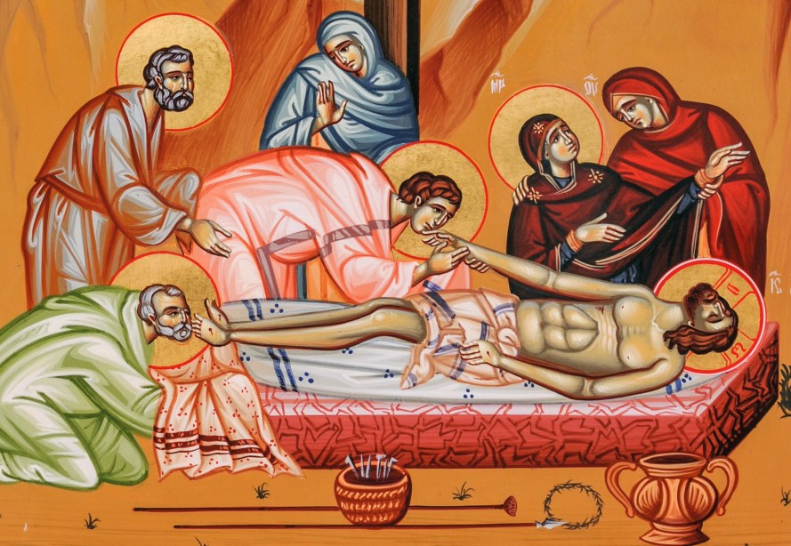 Iosif coborând de pe Cruce sfântul trup al Domnului l-a înmormântat într-un mormânt nou, punând o piatră foarte mare la intrarea mormântului. Într-adevăr, iudeii s-au dus Vineri la Pilat și i-au spus: „Ne-am adus aminte că înșelătorul Acela a spus pe când trăia, că după trei zile Se va scula.