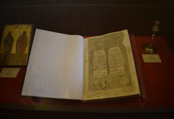 Alături de Cazania lui Varlaam sunt expuse: Apostolul domnitorului Constantin Brâncoveanu – 1704, Dumnezeieștile și Sfintele Liturghii a lui Constantin Mavrocordat – 1741, Biblia de la Blaj – 1795, Ceaslovul de la Brașov – 1835, Sfânta Evanghelie a lui Antim Ivireanu – 1693, două manuscrise de muzică psaltică realizate la începutul secolului XX.
