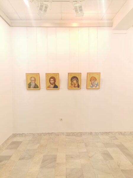 Artistul craiovean Adrian Bănică, asistent universitar la Facultatea de Teologie din Craiova, în cadrul Secţiei de Artă Sacră și doctorand al Facultăţii de Artă Sacră din Veliko Târnovo a expus lucrări în cadrul vernisajului.