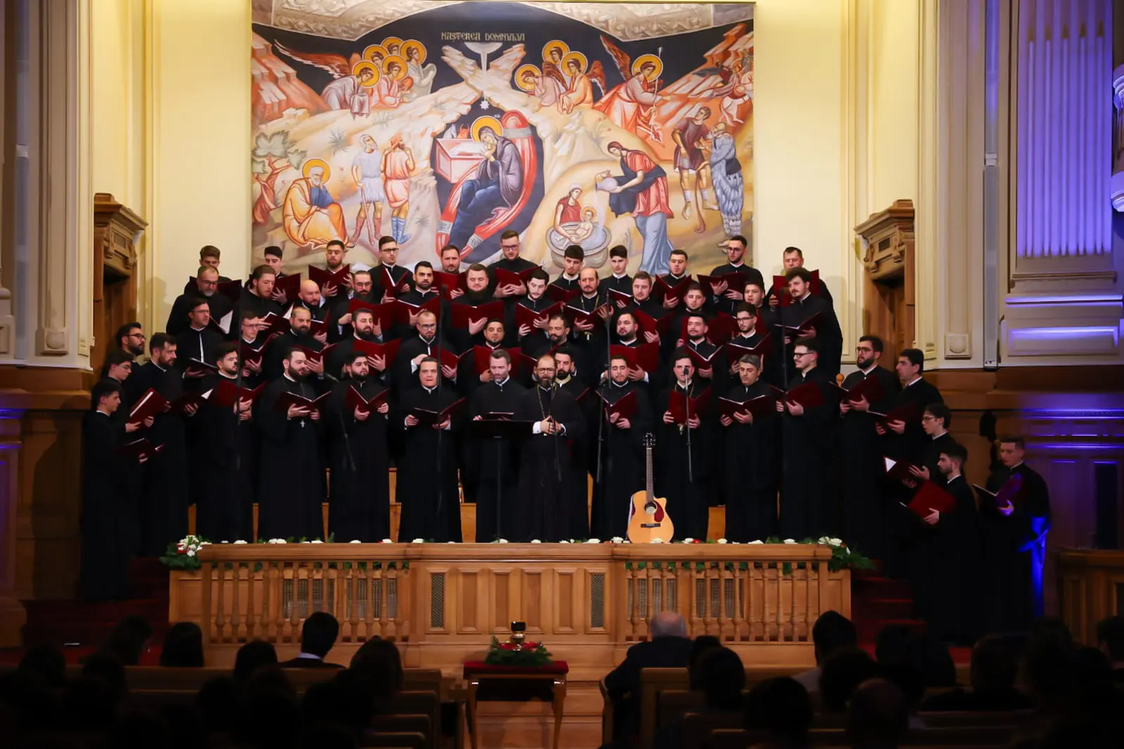 Grupul psaltic Tronos condus de Arhid. Mihail Bucă, protopsaltul Catedralei Patriarhale, a cântat la concertul caritabil organizat de ASTO miercuri, 18 decembrie 2024. Foto: Basilica.ro / Mircea Florescu