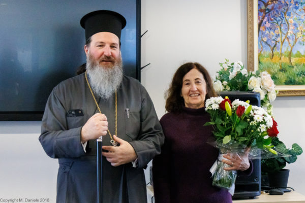 In a particularly moving moment during the luncheon, His Grace Bishop Elpidios, on behalf of the parish, presented a beautiful bouquet of flowers to Presvytera Marina Athanasiou in honour of her recent name day. The gesture was met with warm applause, reflecting the parish’s love and appreciation for Presvytera Marina’s quiet but vital role in parish life.