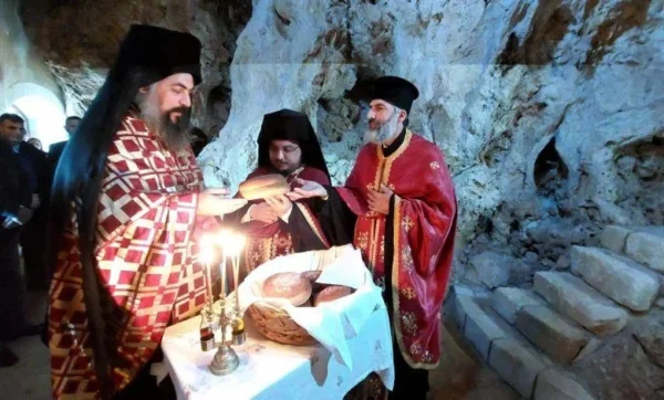 On the occasion of the feast of St. Abba Makarios of Egypt, a Vespers Service was held in an atmosphere of devotion, mysticism and austerity, in the presence of believers, at the “Kathisma” of the Saint, in a cave north of the Orthodox Academy of Crete. The Great Vespers were celebrated by Archimandrite of the Ecumenical Throne Fr Melchizedek, and Protosyncellus of the Holy Metropolis of Kisamos and Selinos, Archimandrite Fr Agathangelos, while the holy hymns were chanted by Fr Dionysios, Parish Priest of Saint Marina’s Church in Kolymbari.