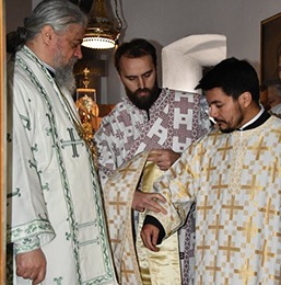 Archpriest-staurophores Gojko Perovic and Obren Jovanovic, archpriests Igor Balaban and Mirceta Sljivančanin, abbot of the monastery of St. Simeon the Myrrh-bearer in Podgorica, Archimandrite Danilo, protosynchellos Justin and Isak from Cetinje monastery, as well as deacons Dusan lekic concelebrated to the Bishop. On that occasion, the Bishop ordained monk Amfilohije to the rank of deacon.