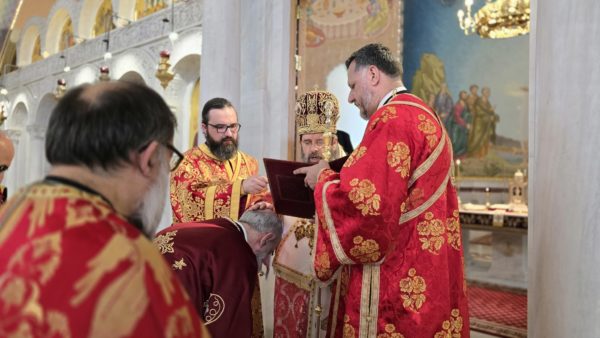 During the service, Archbishop Anastasios conferred the honorary ecclesiastical title of Sakellarios–Stavrophoros upon Fr. Ilias Maznik, recognising his dedicated pastoral service.