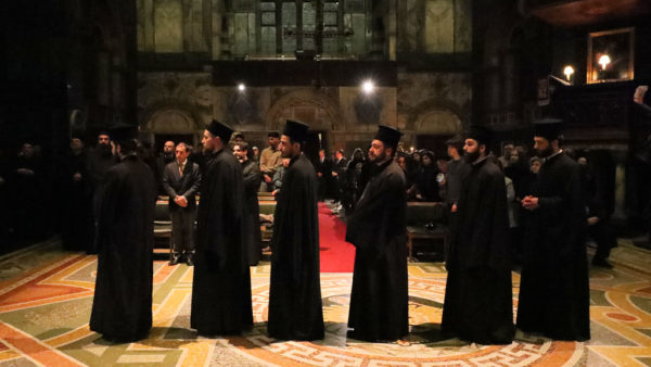 On the evening of Sunday, 17th March 2024, at the Holy Archdiocesan Cathedral of the Divine Wisdom in Bayswater, His Eminence Archbishop Nikitas presided over the Vespers of Forgiveness, marking the commencement of Holy and Great Lent. Joining His Eminence in prayer were His Eminence Metropolitan Athanasios of Colognia and His Grace Bishop Iakovos of Claudiopolis, along with the Very Revd Archimandrite Nephon Tsimalis, Protosyncellus of the Archdiocese. Numerous clergymen from the greater London area also attended, as is customary for the start of Great Lent.