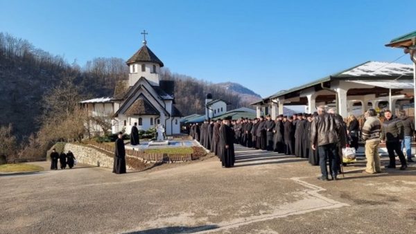 With the blessing of His Grace, Bishop Fotije of Zvornik-Tuzla and administrator of the Diocese of Sabac, His Eminence Metropolitan Joanikije of Montenegro and the Littoral officiated the Holy Hierarchical Liturgy in the Holy Monastery of St. Nicholas of Ohrid in Soko Grad onon March 3, 2022, on the feast of Saint Leo, Bishop of Rome.