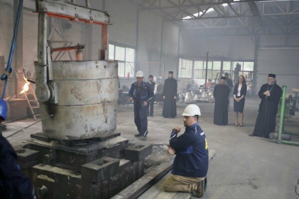Înainte de începerea procesului, Episcopul Iustin, a citit rugăciunea specială pentru turnarea clopotului, informează Episcopia Maramureșului și Sătmarului.