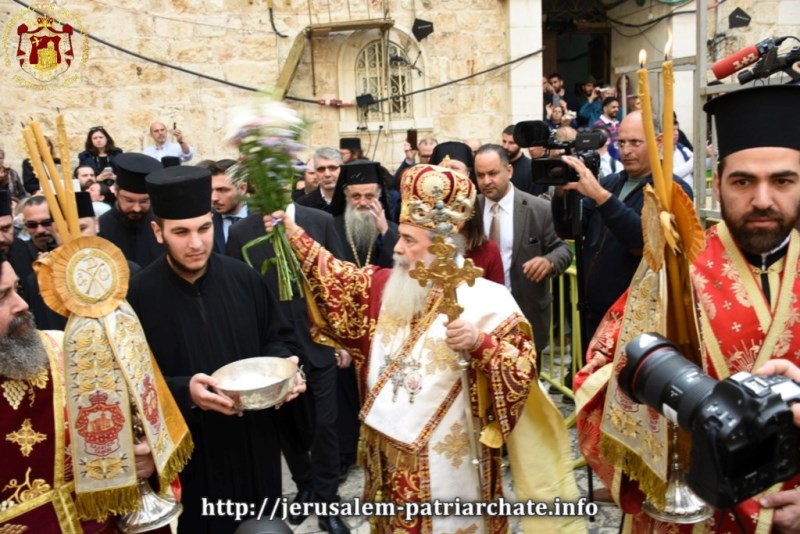 Ritualul s-a desfăşurat în curtea Bisericii Sfântului Mormânt.