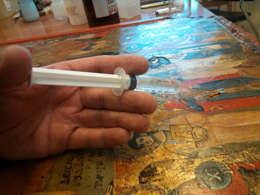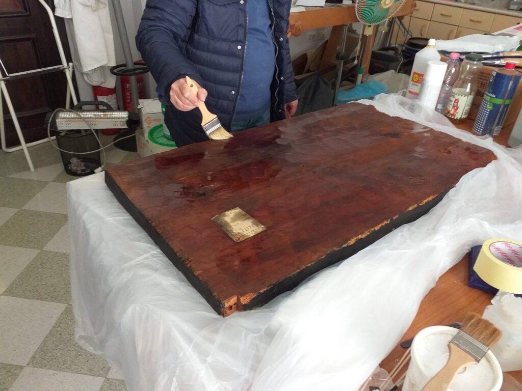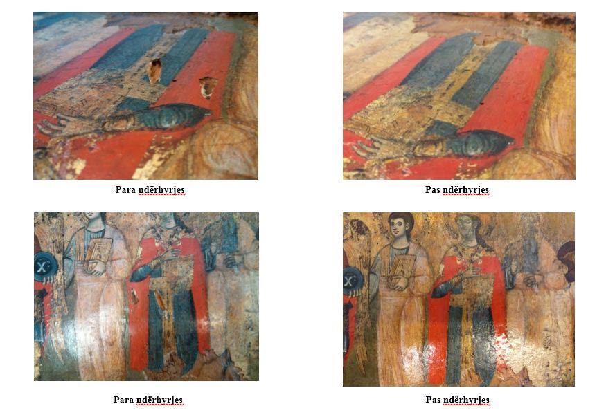 Ndërhyrja restauruese u realizua në laboratorin e Restaurimit të Veprave të Artit pranë IMK-së. Kjo ndërhyrje konsistoi në dezinfektimin e ikonës, konsolidimin e drurit, stukimin dhe integrimin e dy pjesëve të vogla të dëmtuara.