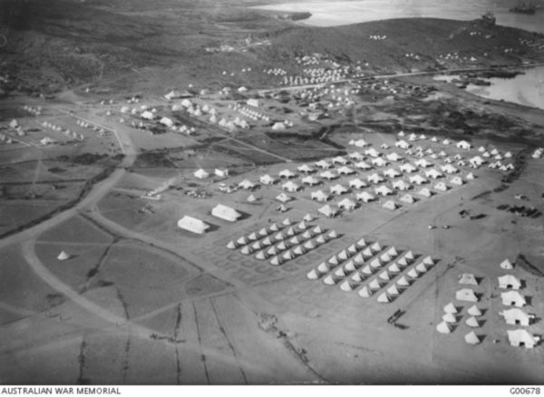 It was also the location of the overall Allied commander’s (General Sir Ian Hamilton) headquarters, with all the support that such a base of operations required. Along with medical services, Imbros was the location of field bakeries, including those run by Australian units, which supplied fresh bread to the Allied troops on the Peninsula. Aerial photographs from time reveal the extent of the large tented camp established near the shore of Kephalos Bay.