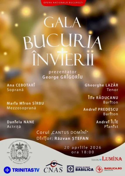 Opera Națională București va găzdui luni, 20 aprilie 2026, de la ora 18:00, un spectacol special: Gala Bucuria Învierii.