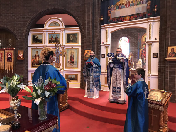 The faithful gathered at St. Nicholas for Festal Vespers, where together with the angelic voice of Presbytera Karen Veselinovic, the scent of incense, and lily flowers which surrounded the icon, announced the feast of the Annunciation. Vespers was served by Fr. Maksim, while the responses were sung by Fr. George. The morning of the Annunciation, St. Nicholas Church was filled with the faithful. The responses sung by the choir of St. Nicholas were majestic. A special joy was the amount of people communing with the Body and Blood of Christ during Holy and Divine Liturgy. An inspiring homily was given by Fr. George about the meaning and details of the Feast of the Annunciation, while Presbytera Karen and teachers of St. Nicholas Sunday School devoted their time to the teaching of our youth. Light refreshments were served in the parish hall at the conclusion of Divine Liturgy.