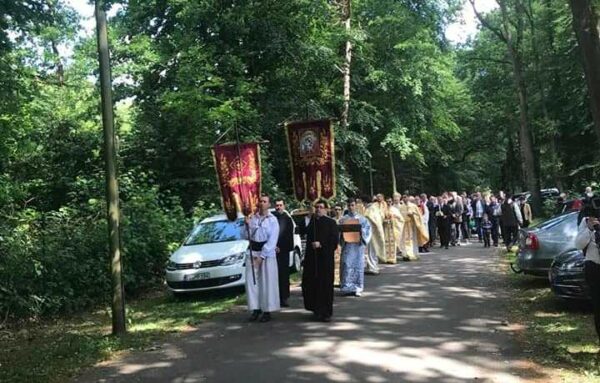 După Slujba Sfintei Liturghii, Mitropolitul împreună cu clericii şi credincioşii, dar şi cu reprezentanți ai comunităților locale catolică și evanghelică, au pornit în procesiune până la locul unde va fi construită biserica (Am Schutzenplatz, 49751 Sögel).
