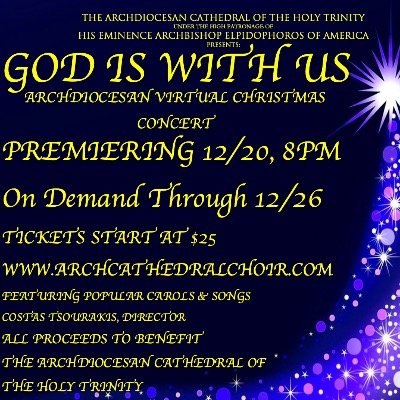 This concert features a collaboration of several small choral groups filmed at churches within the Archdiocesan District, including Saints Catherine & George Greek Orthodox Church, St. Barbara, Saints Constantine & Helen, St. Gerasimos, and the Archdiocesan Cathedral of the Holy Trinity in Manhattan. In addition, after a successful debut of combined nationwide efforts to bring holy music into your homes this past Easter (National Virtual Choir Sings Χριστός Ανέστη! Christ is Risen! ( https://youtu.be/6dnrEMVk5Xw ) –submissions were sent once again from all corners of this country for “Christ is Born; Glorify Him!”, a virtual choir selection with combined voices that allowed us to gather as a community with Christ through music to offer each other and our families solace during these difficult and trying times.